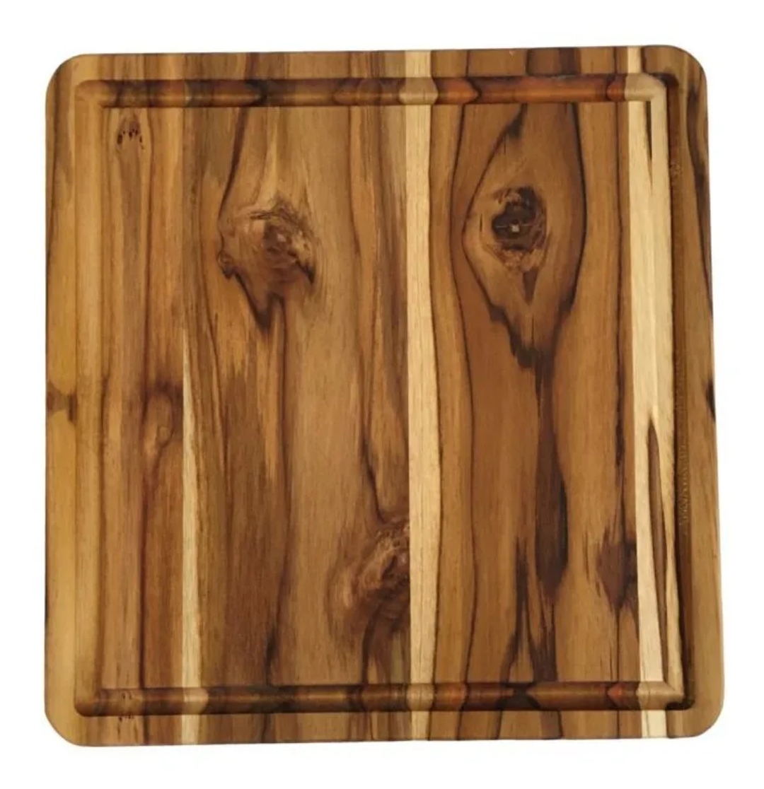 TÁBUA DE CARNE CORTE COZINHA CHURRASCO DE MADEIRA TECA 30x30x2cm